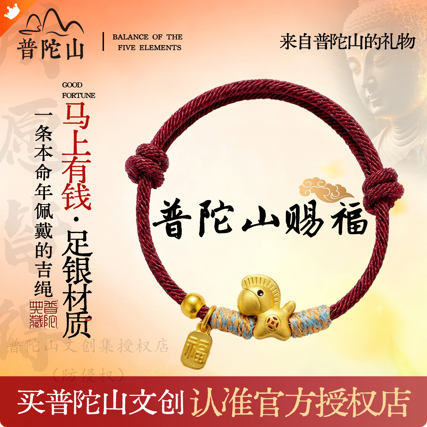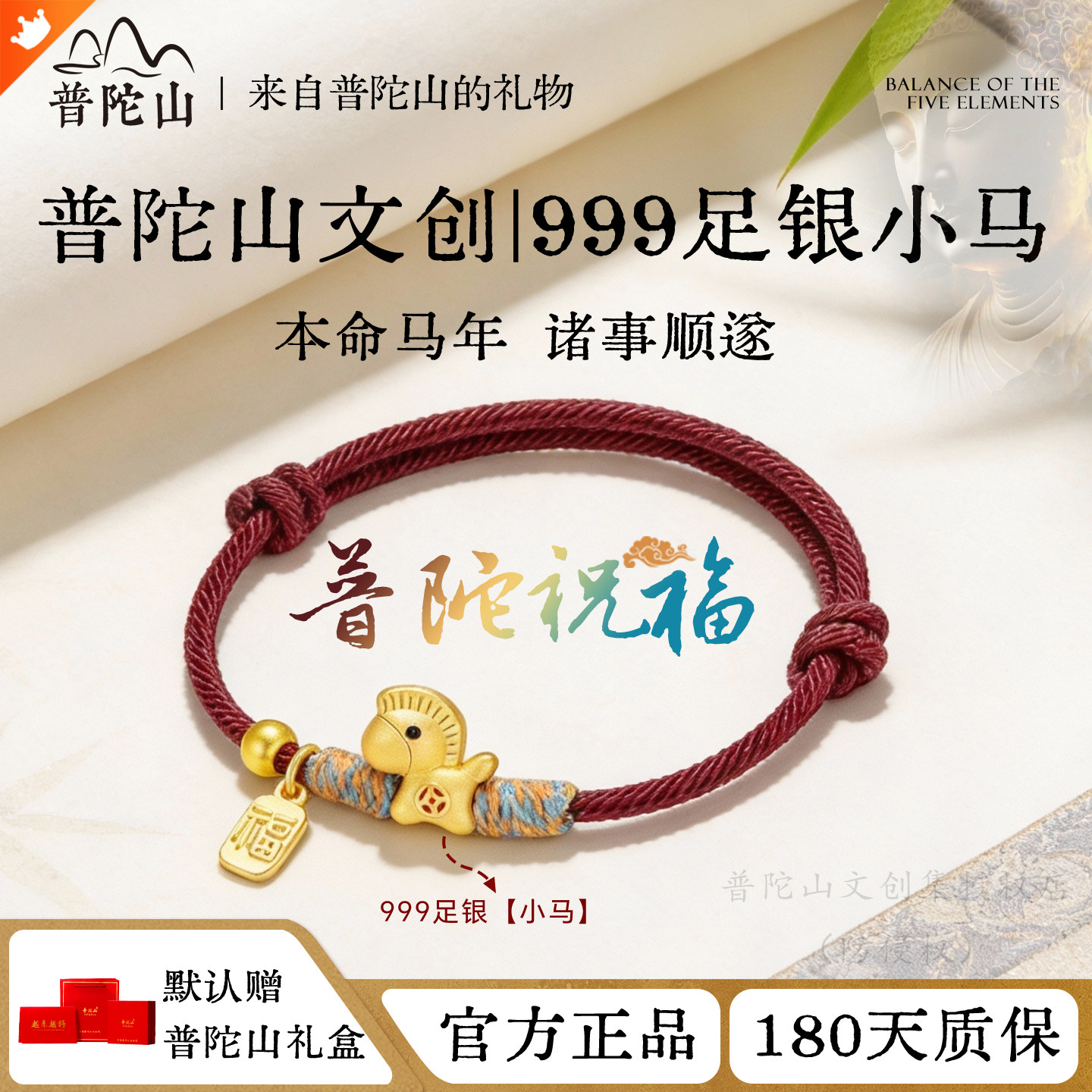 普陀山官方2026马年本命年S999纯银手链编织红手绳转运珠生日礼物