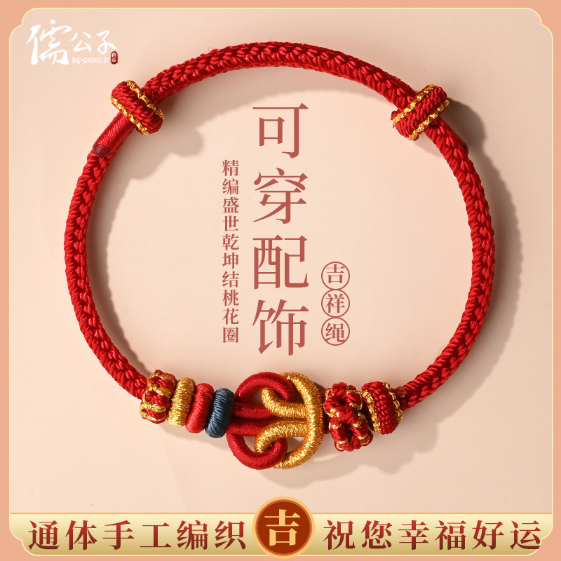 可穿黄金手工编织乾坤结手绳转运珠diy手链桃花男女款情侣礼物