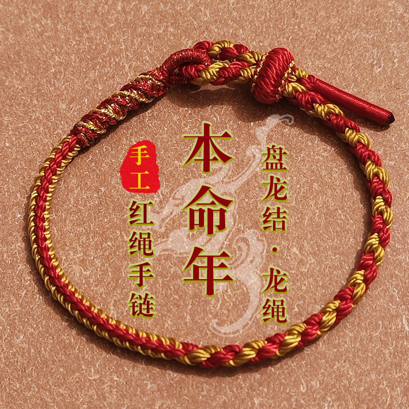 2026马鼠牛兔本命守岁生肖男女红手绳转运珠手工编织非遗原创套装