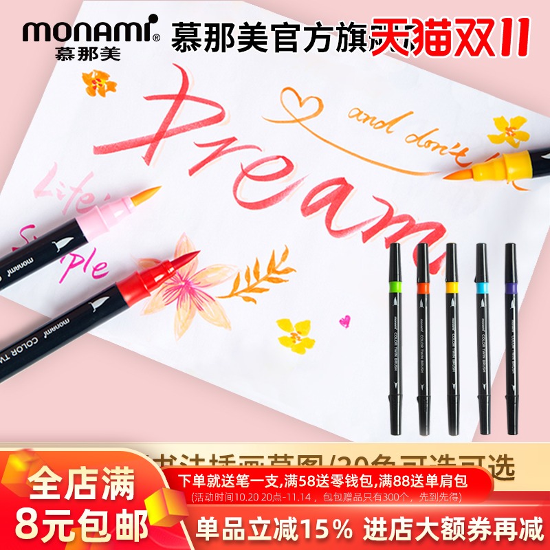 韩国慕娜美软头粗细双头彩色笔水彩笔彩绘手绘书法勾线儿童涂鸦笔画画Brush毛笔画笔慕那美油画棒秀丽笔彩色