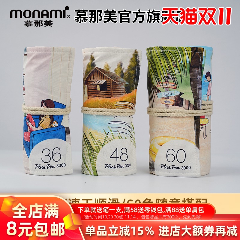 幕那美旗舰店MonamiP3000新款布袋装笔帘手账中性勾线笔小学生慕娜美水彩笔套装纤维笔马克笔硬头涂鸦彩笔