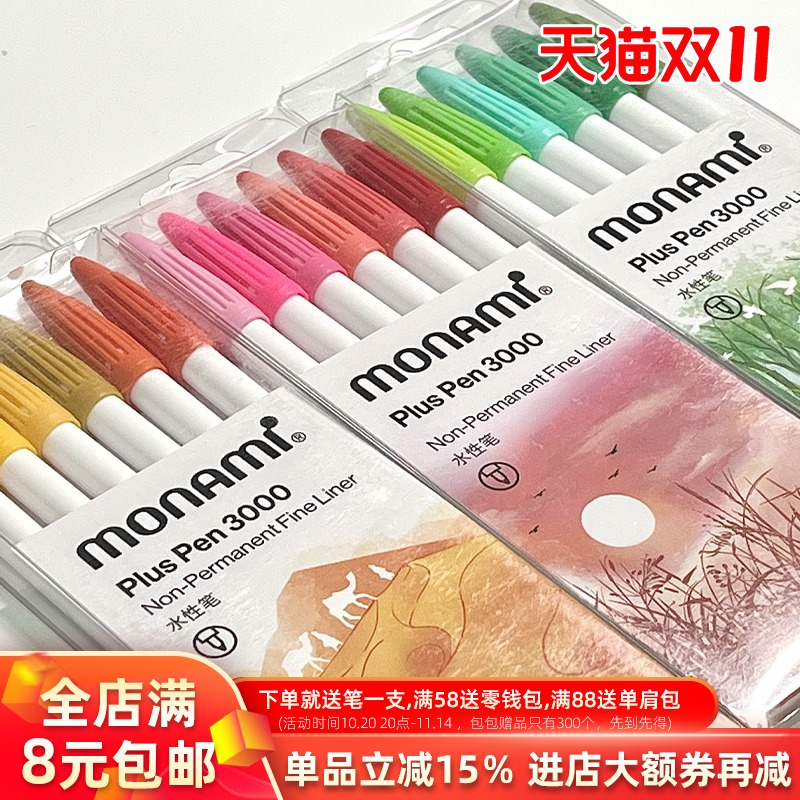 慕娜美monami3000水彩笔学生彩色手账笔中性笔水性笔纤维笔勾线笔