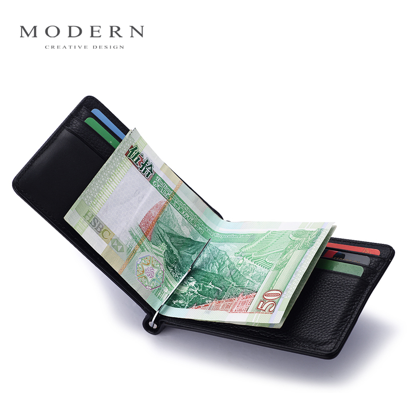 Modern简约钱夹 真皮短款卡包 超薄钱包 男士真皮钱夹 金属钱夹