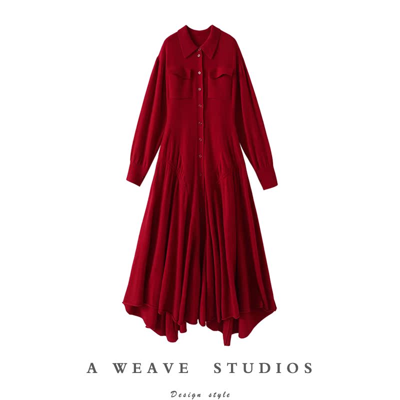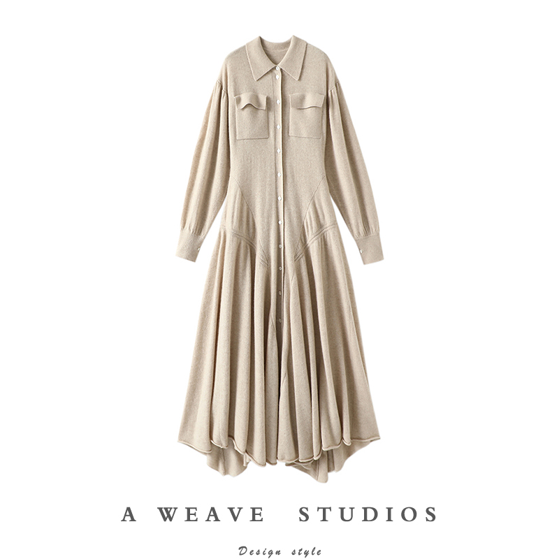 主角气场!大克重纯羊绒衫女长款连衣裙子羊绒毛衣针织开衫大摆裙