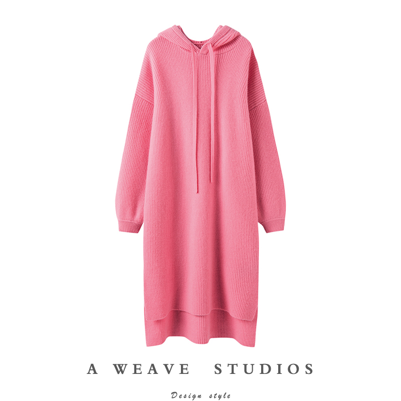 这颜色气质谁不爱~大克重加厚蜜桃粉连帽羊绒衫女长款连衣裙帽衫