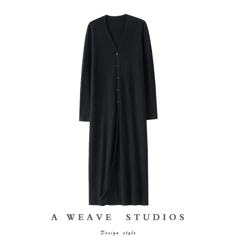 气质天花板!精纺100%纯山羊绒开衫女长款连衣裙子针织外套罩衫
