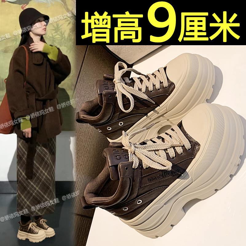 2025年秋冬新款女鞋厚底增高老爹鞋女款时尚百搭高帮松糕底休闲鞋