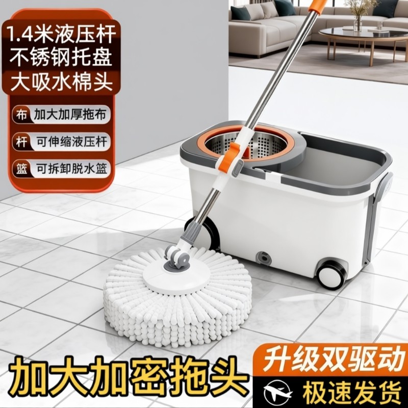 家用拖把旋转式自动脱水桶免手洗墩布桶拖地神器双驱动杆2025新款
