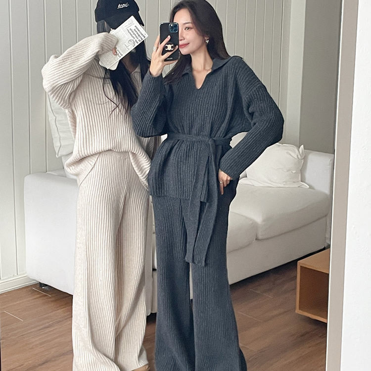 时尚起义韩国套装潮范2025冬V字翻领宽松针织衫+长裤dp25111604