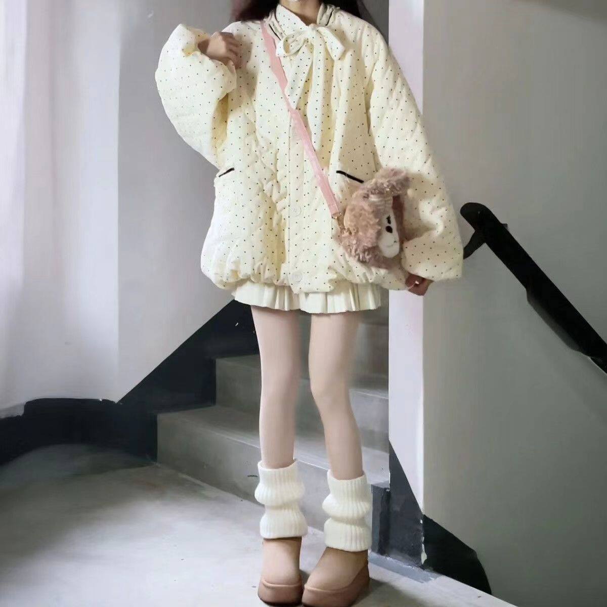韩版奶fufu波点花苞棉服女2025冬季设计感可爱保暖防寒面包服外套