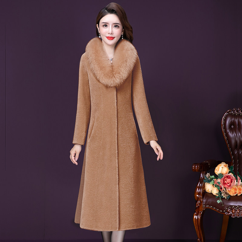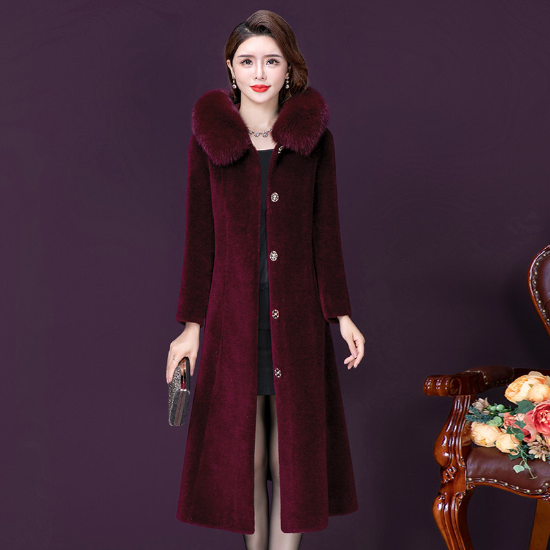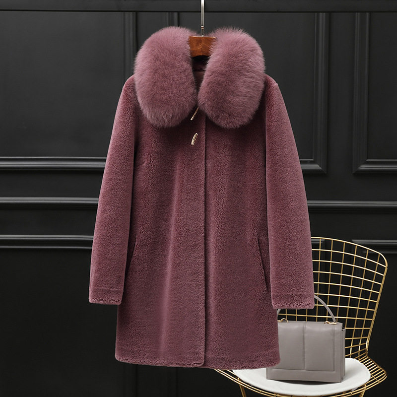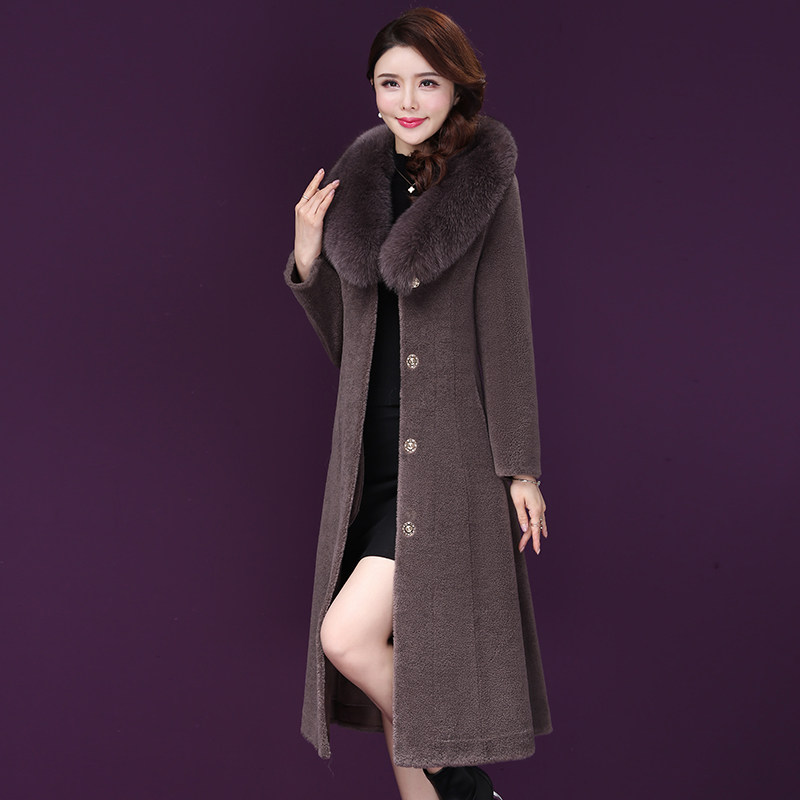 羊剪绒大衣妈妈装中长款狐狸毛领皮毛一体羊羔毛中老年皮草女外套