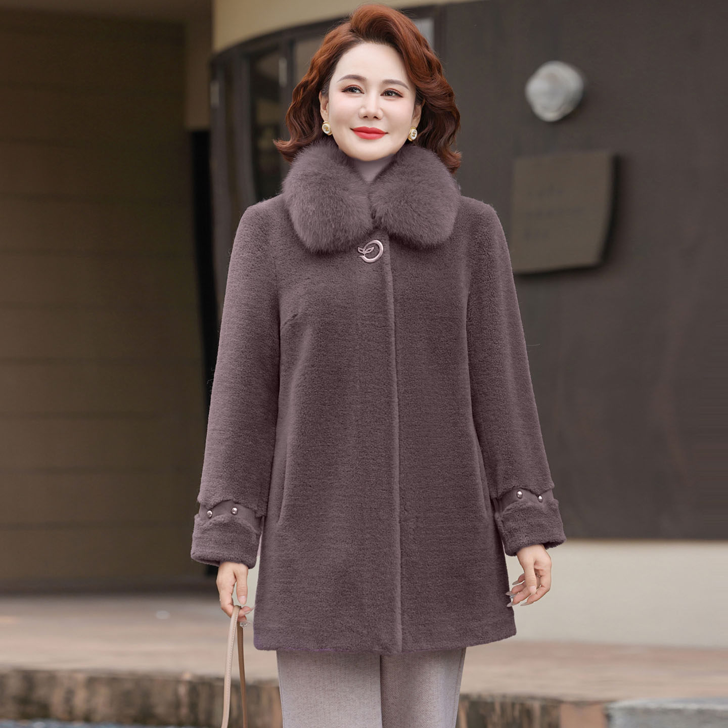 高端妈妈冬装保暖羊剪绒外套中老年女装皮毛一体毛呢大衣2025新款
