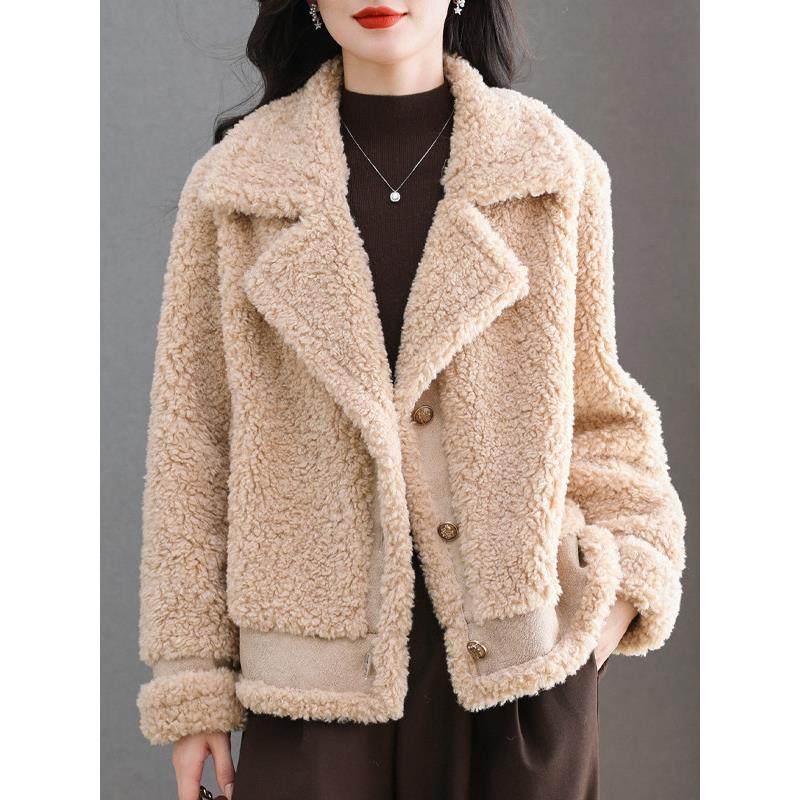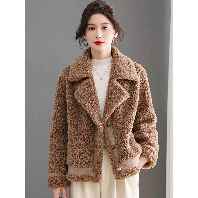 羊羔毛皮草外套女短款西装领宽松开衫秋冬加厚皮毛一体羊剪绒大衣