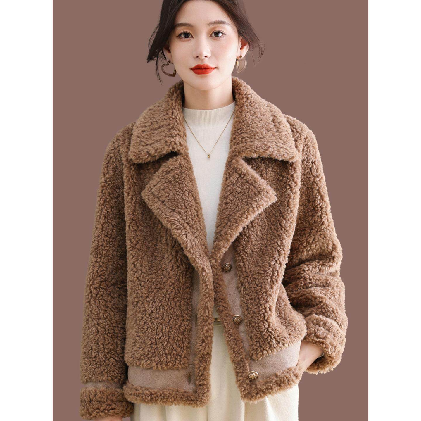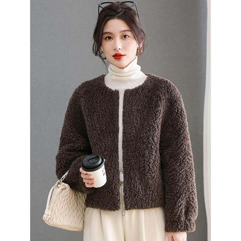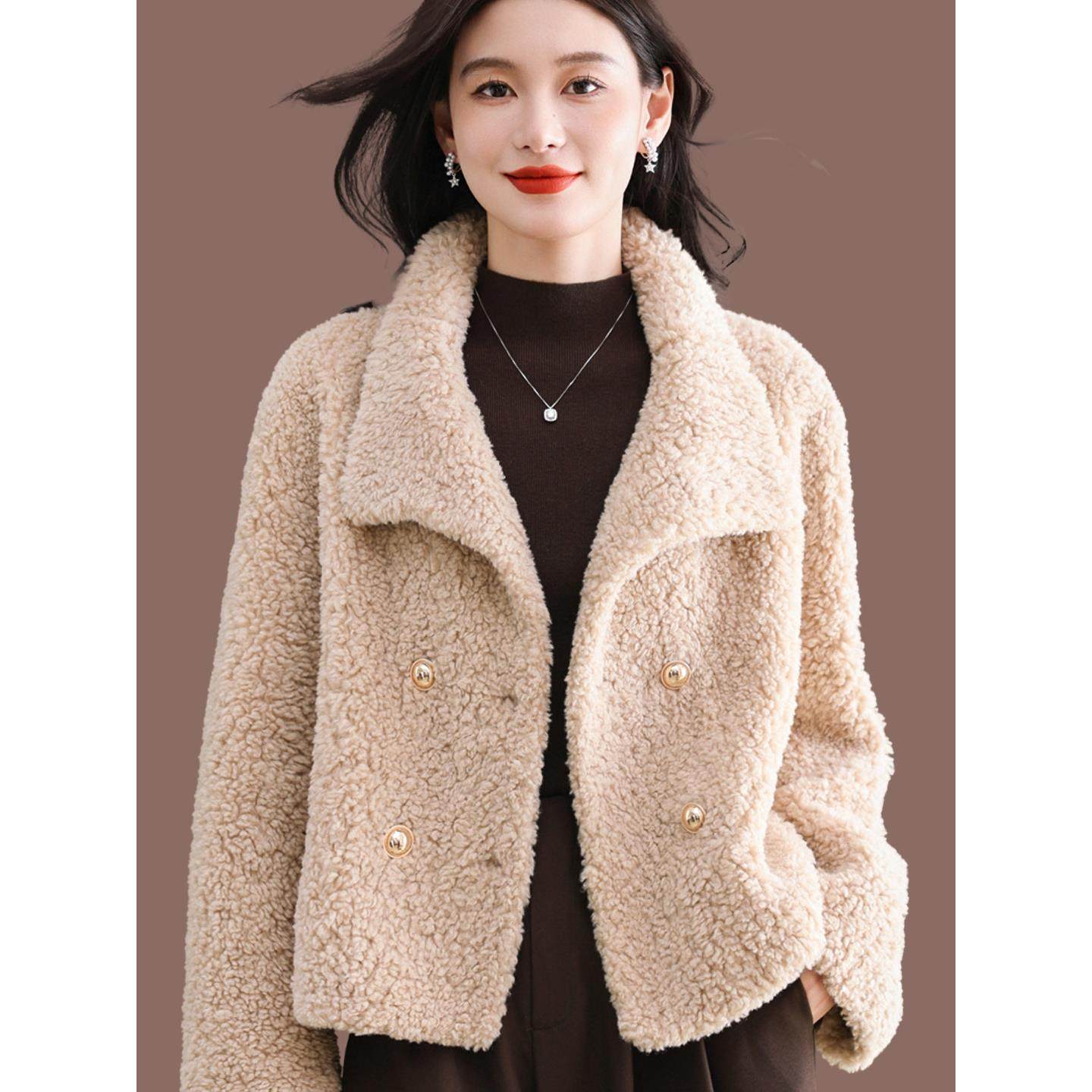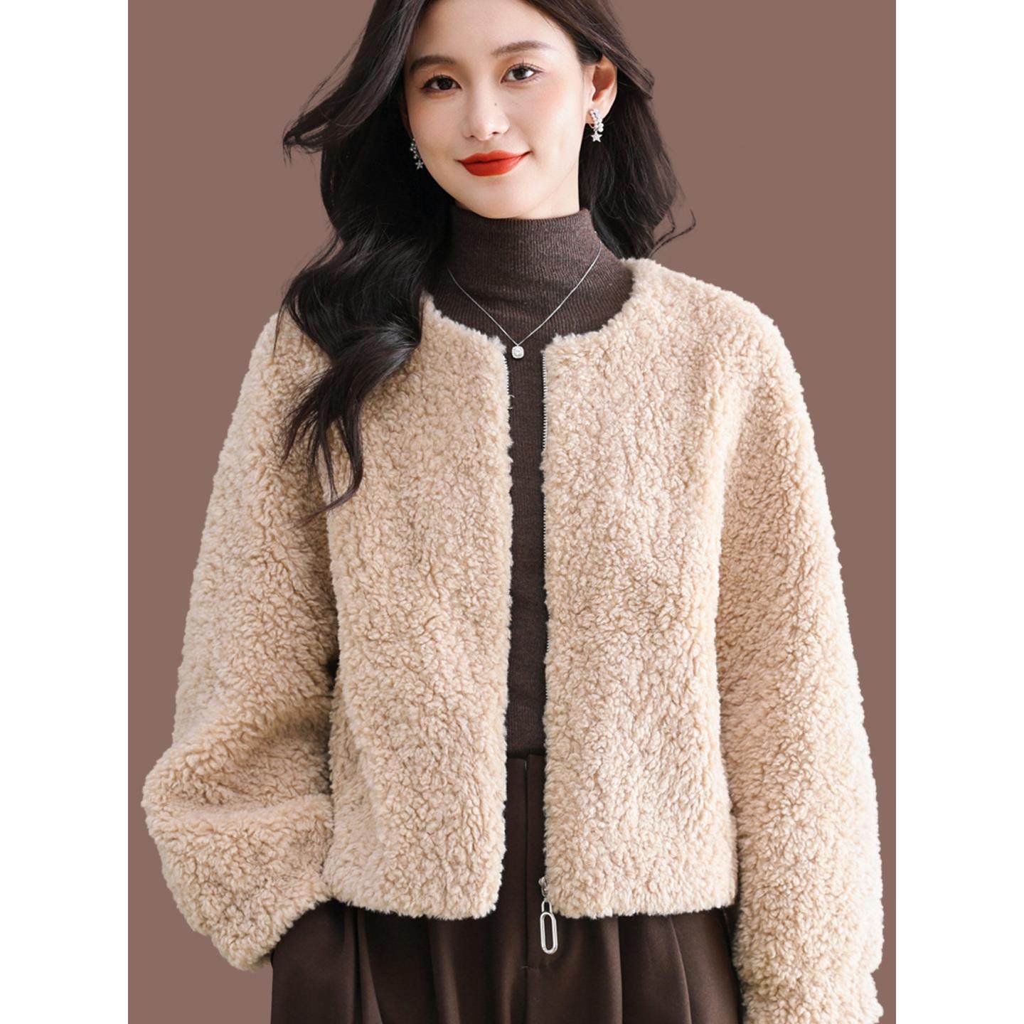 颗粒绒皮草外套女短款羊剪绒减龄休闲时尚保暖羊羔毛大衣冬季上衣
