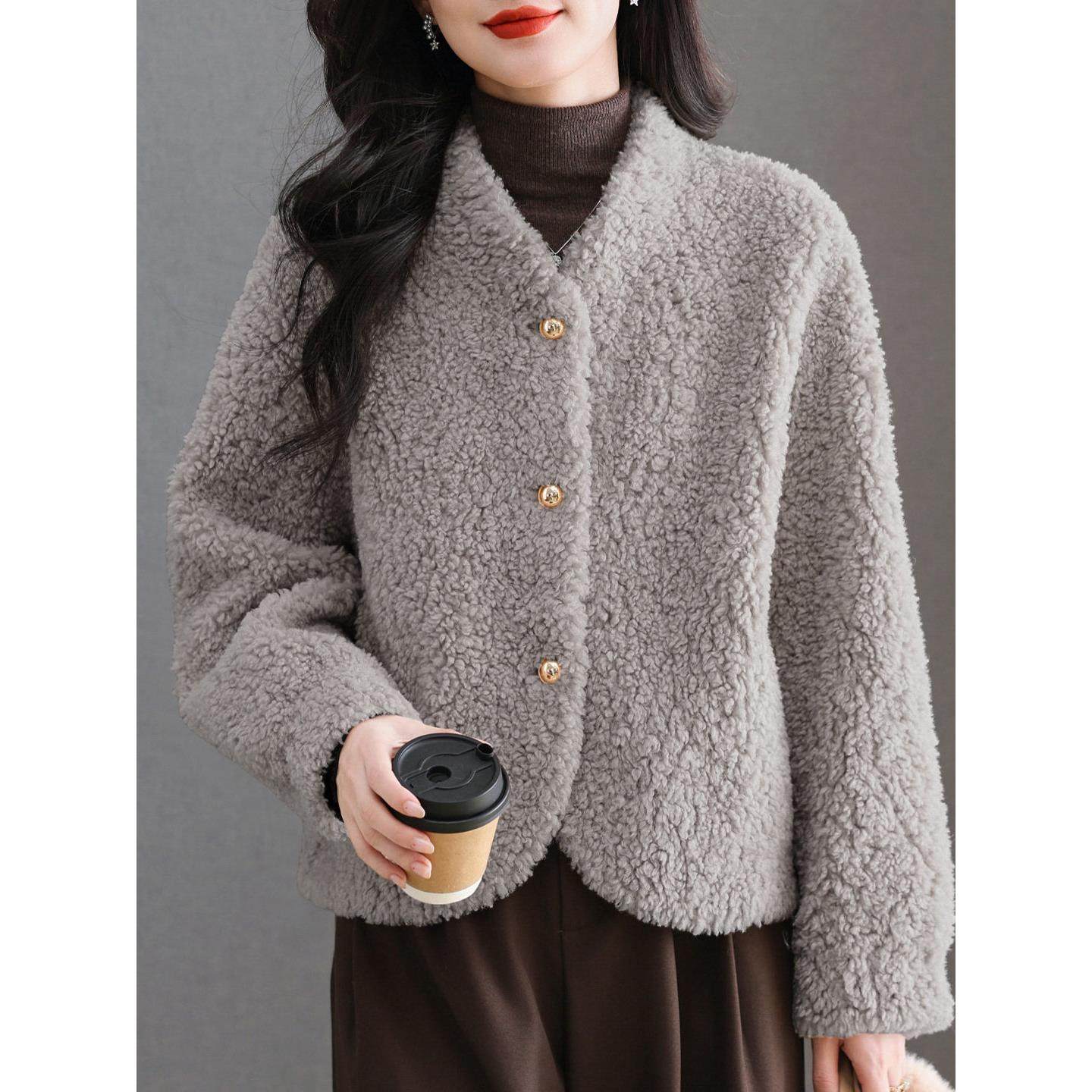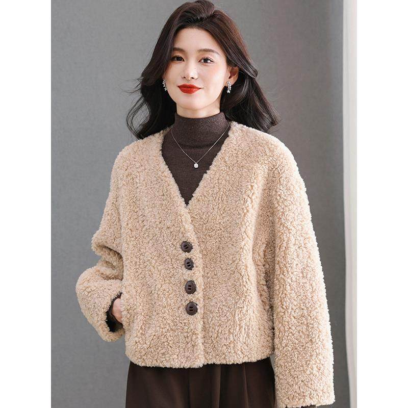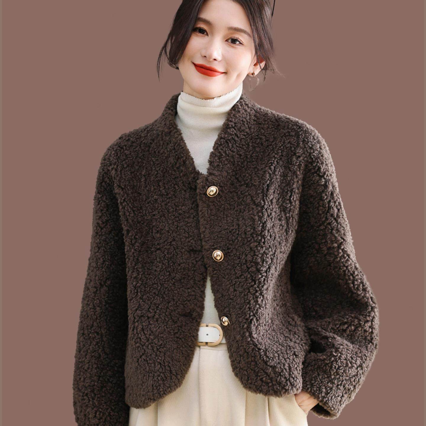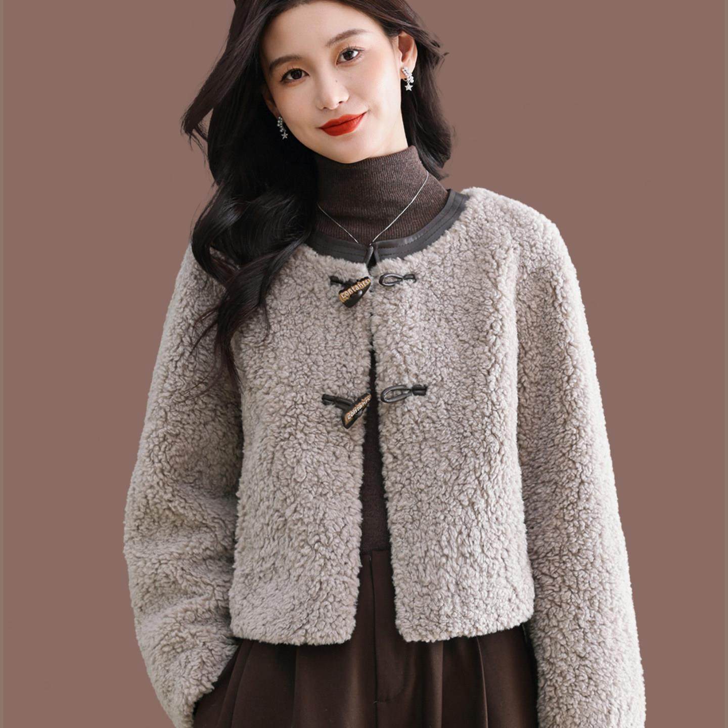 颗粒绒皮草外套女短款羊剪绒减龄休闲时尚保暖羊羔毛大衣冬季上衣