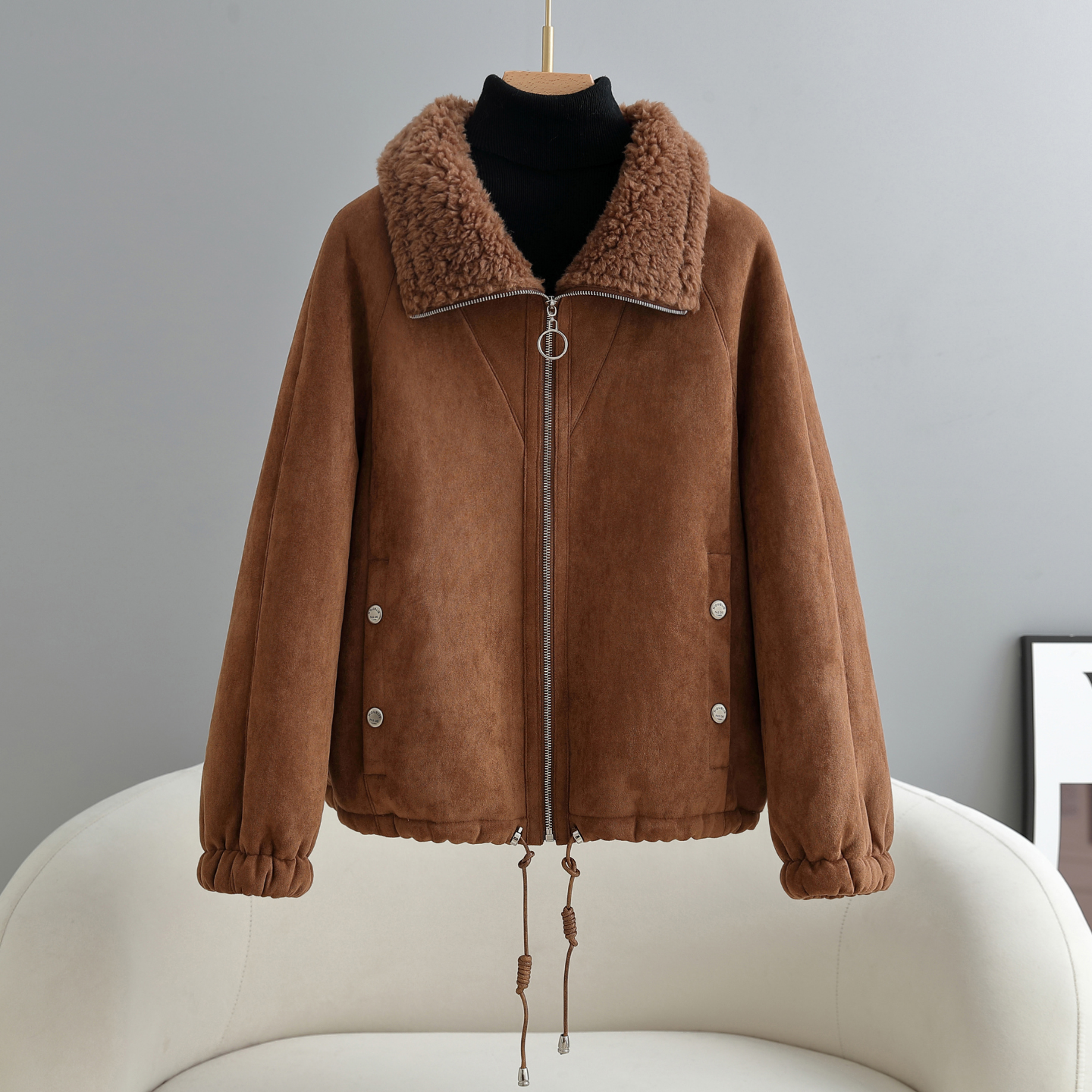 颗粒绒皮草外套女短款保暖羊剪绒加厚减龄拉炼羊羔毛大衣冬季上衣