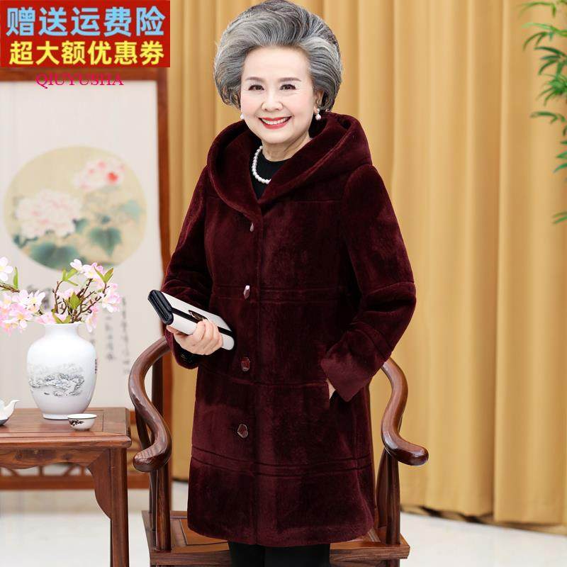 妈妈羊剪绒大衣老年人秋冬装女奶奶羊毛呢外套太太中长款老人衣服
