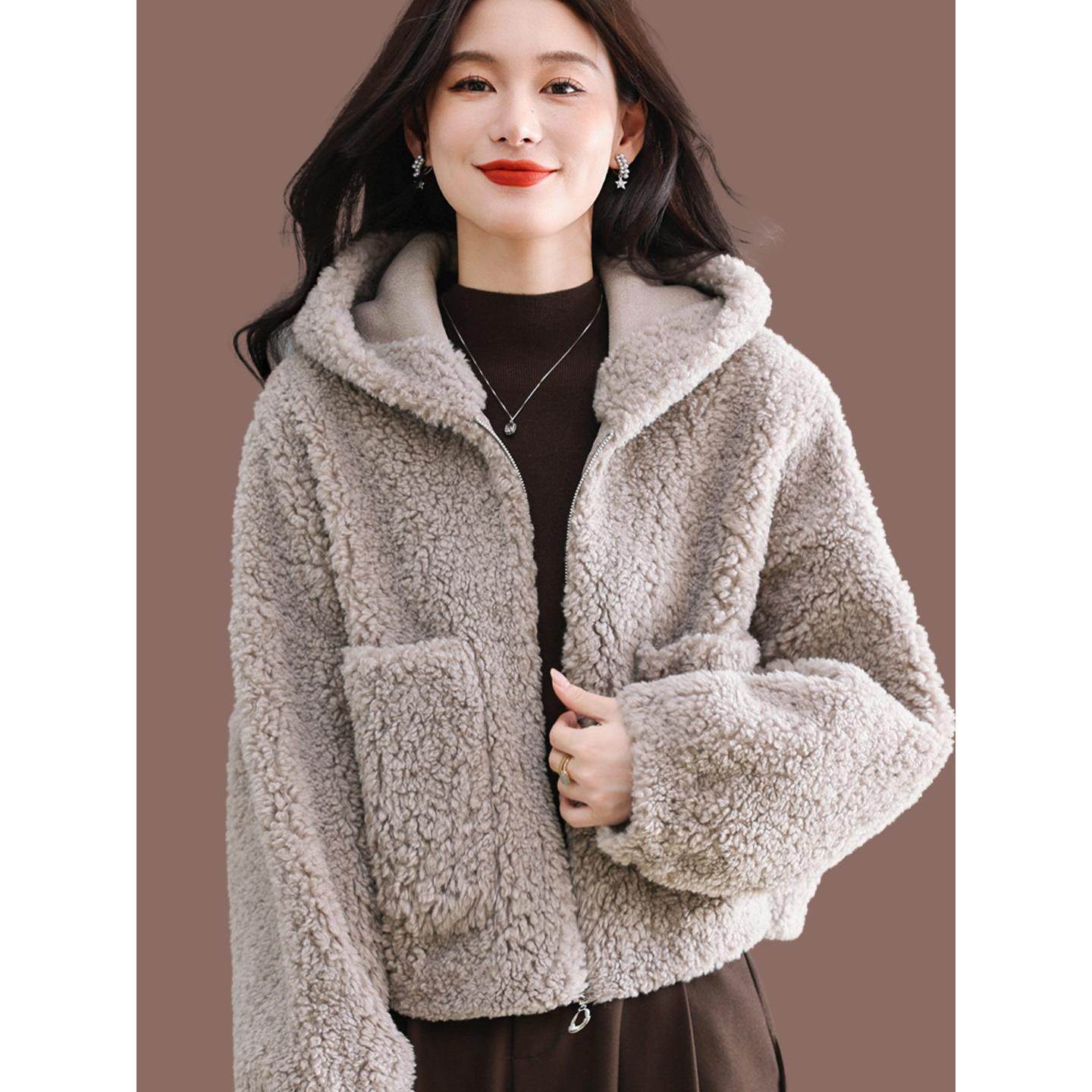 羊羔毛皮草外套女羊剪绒皮毛休闲皮毛一体连帽年轻款短款毛毛大衣