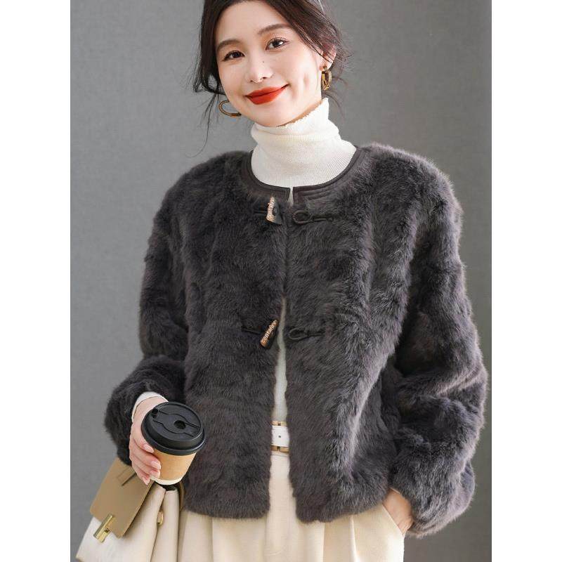2025新款颗粒皮草外套女短款一体羊剪绒小香风羊羔毛大衣洋气上衣