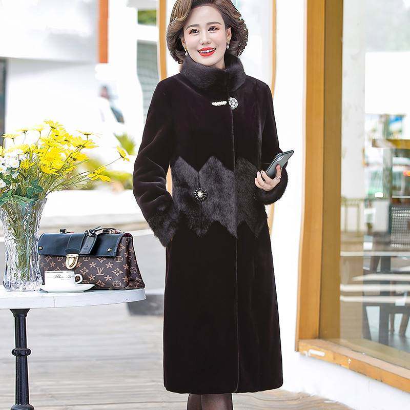 妈妈冬装羊剪绒外套高端中长款皮草中老年水貂绒皮毛一体大衣大码