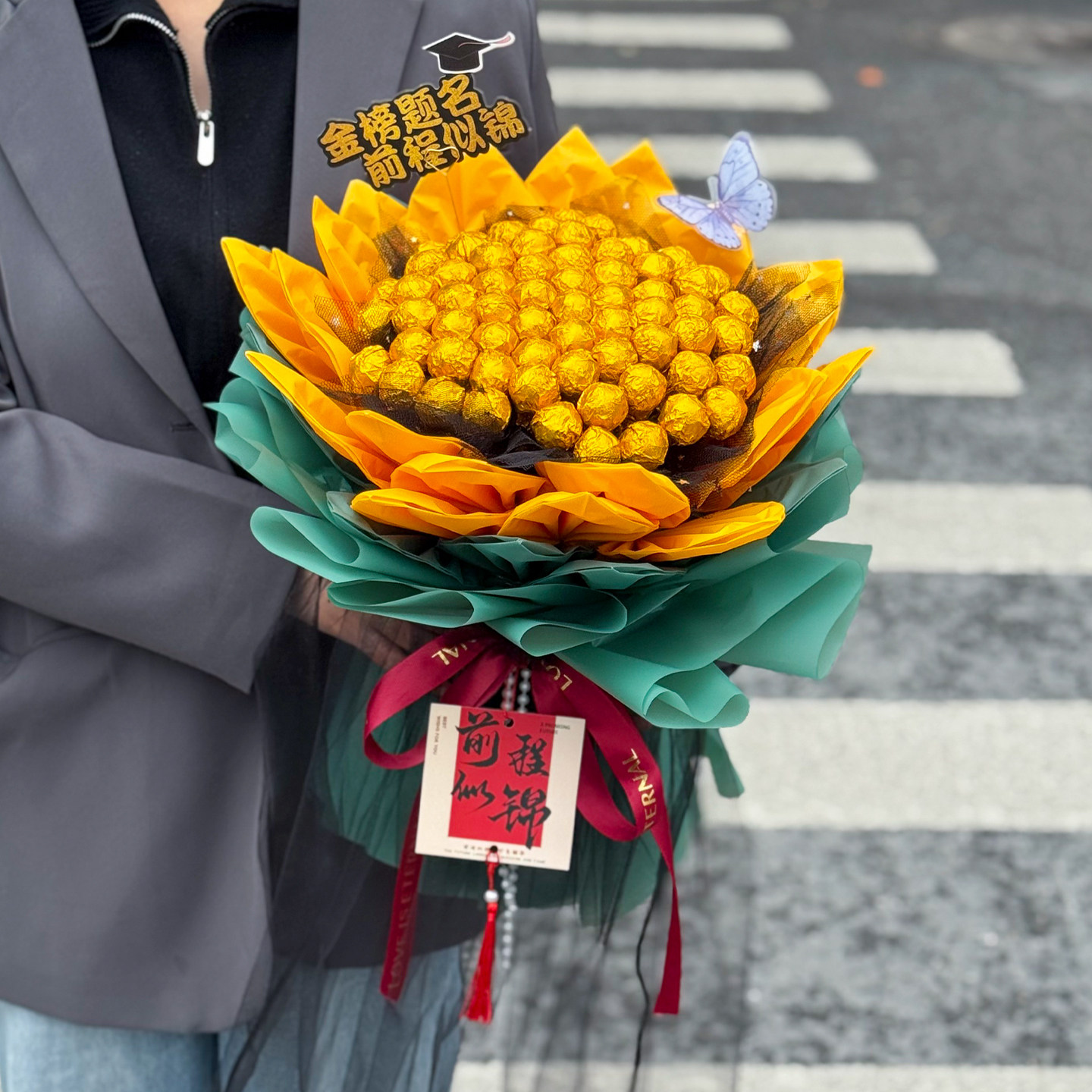 誓师大会花中高考送学生一举夺魁向日葵棒棒糖花束送学生金榜题名