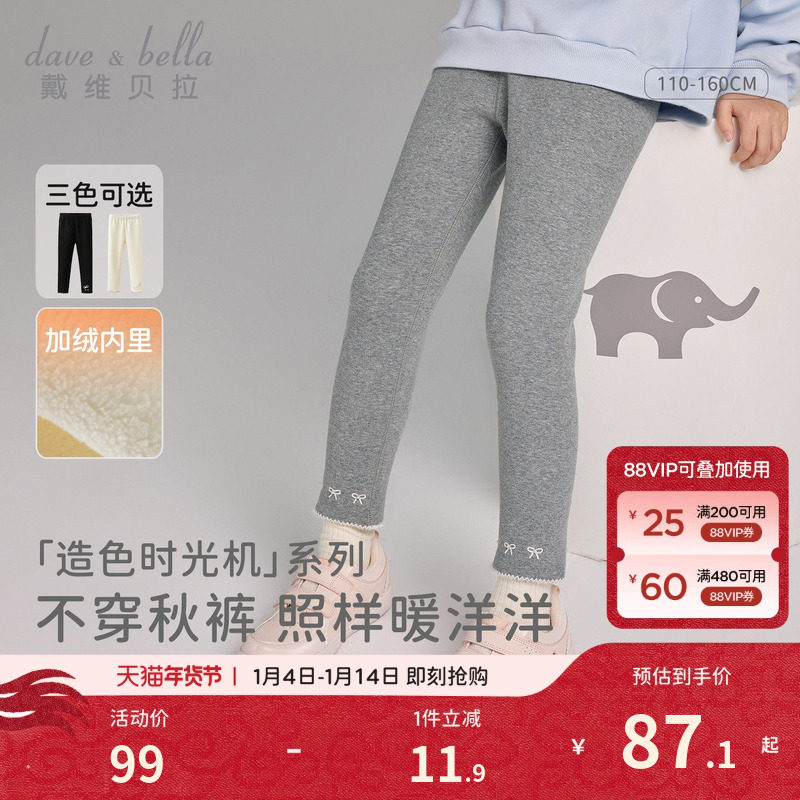 戴维贝拉女童加绒打底裤儿童针织裤子2026新款冬装黑色紧身绒裤女