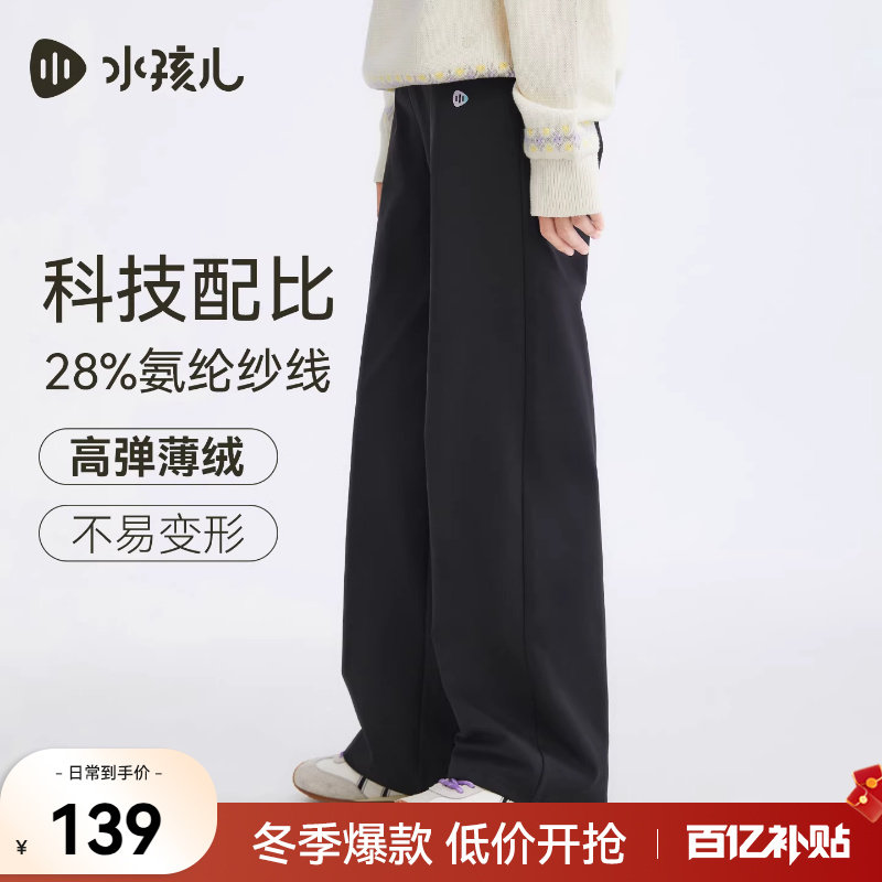水孩儿儿童长裤2025秋冬新品男童休闲裤女童加绒打底裤喇叭阔腿裤