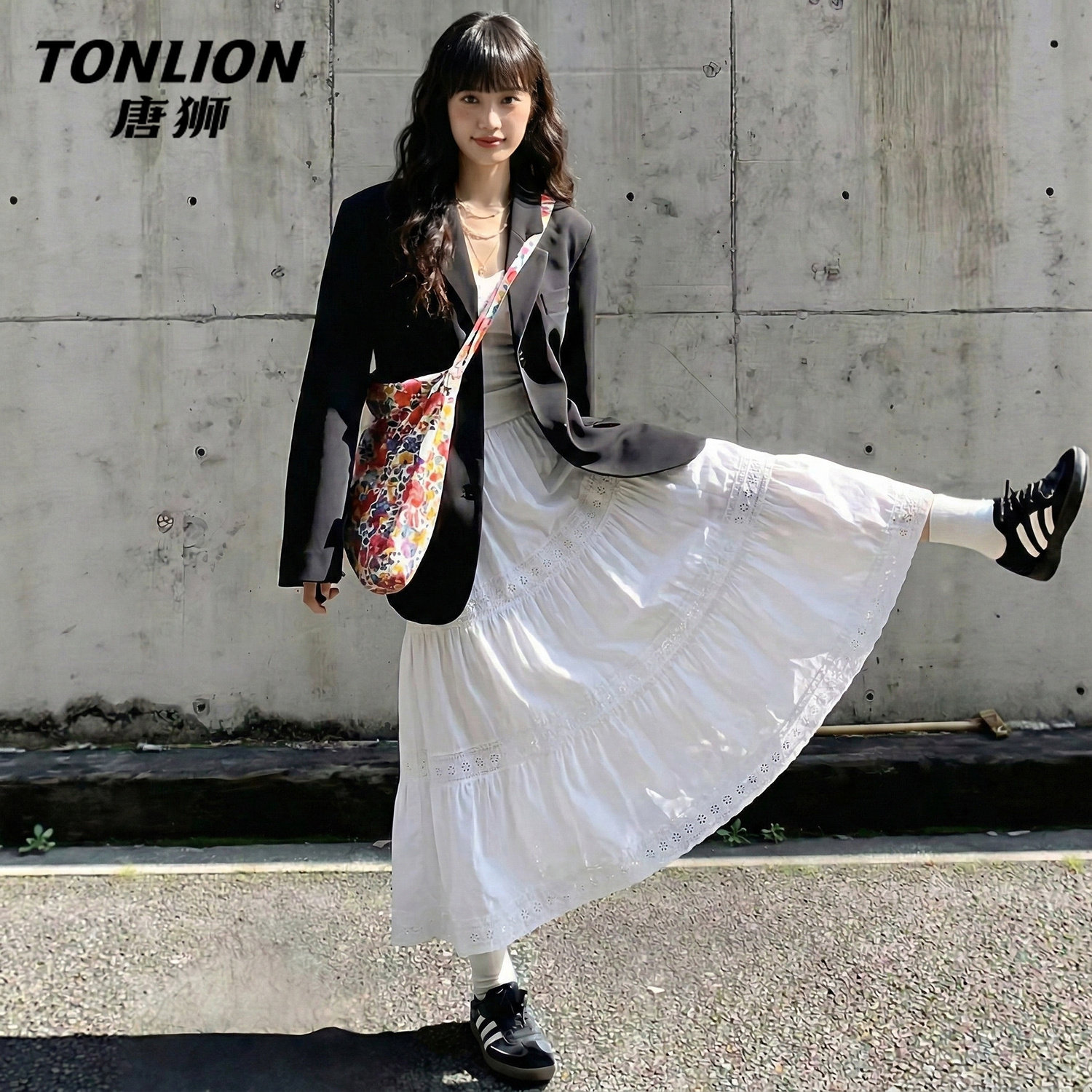 唐狮官方白色半身裙女2026新款夏法式拼接蕾丝蛋糕裙a字蓬蓬裙VC