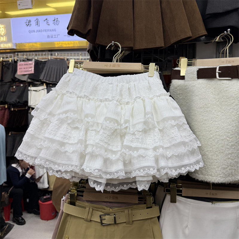 秋冬甜美减龄白色芭蕾风半身裙女高腰蓬蓬裙蕾丝蛋糕裙短裙防走光
