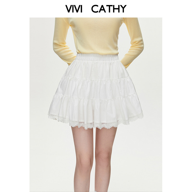 VIVICATHY2026年春季新款甜美白色半身裙女芭蕾蕾丝蛋糕裙蓬蓬裙