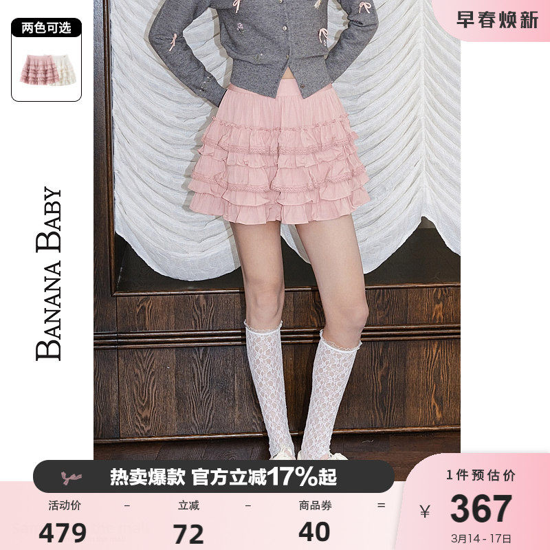 BANANA BABY2026年春季新款甜美千金风短半身裙女高腰蕾丝蛋糕裙