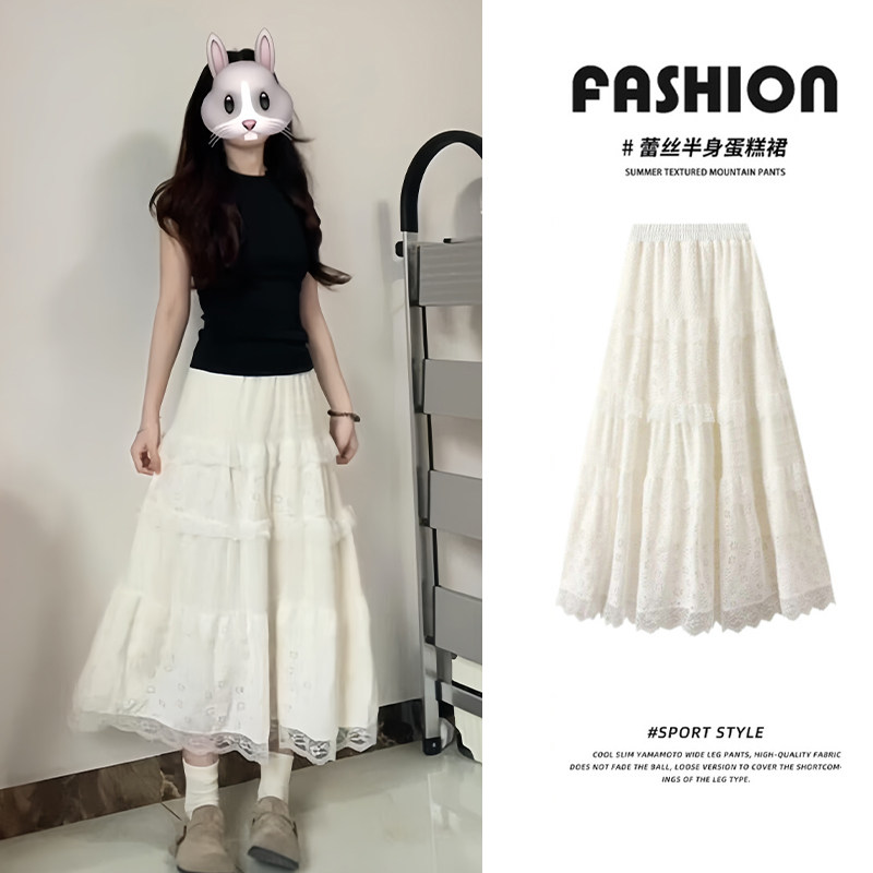 白色蕾丝蛋糕裙女春夏高腰显瘦宽松中长款a字韩系蓬蓬镂空半身裙
