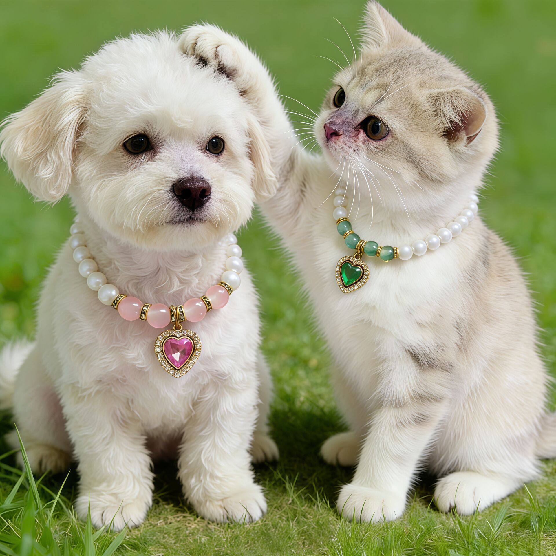 森系水滴石小猫咪项圈银金渐层英短珍珠项链德文猫专用脖子装饰品