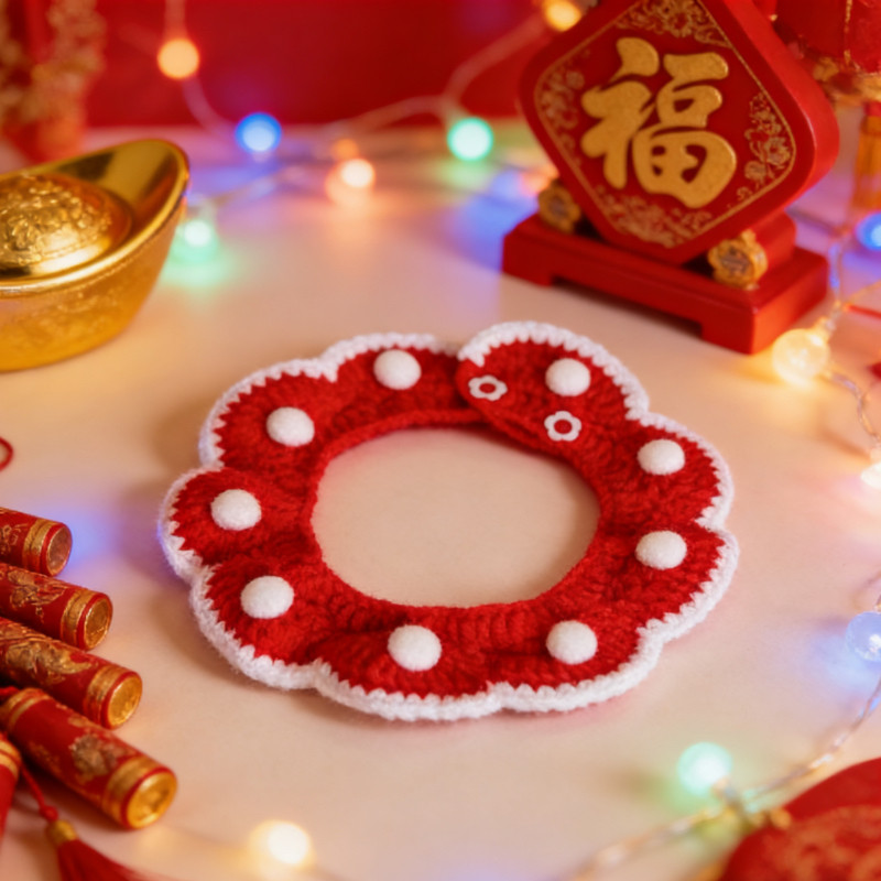 宠物过年围脖猫咪针织围巾钩针狗狗项圈小型犬脖子饰品猫拍照道具