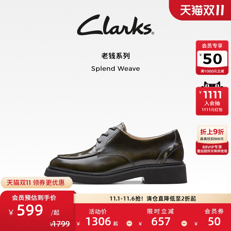 Clarks其乐Splend Weave女鞋春秋季英伦风德比鞋单鞋复古黑皮鞋