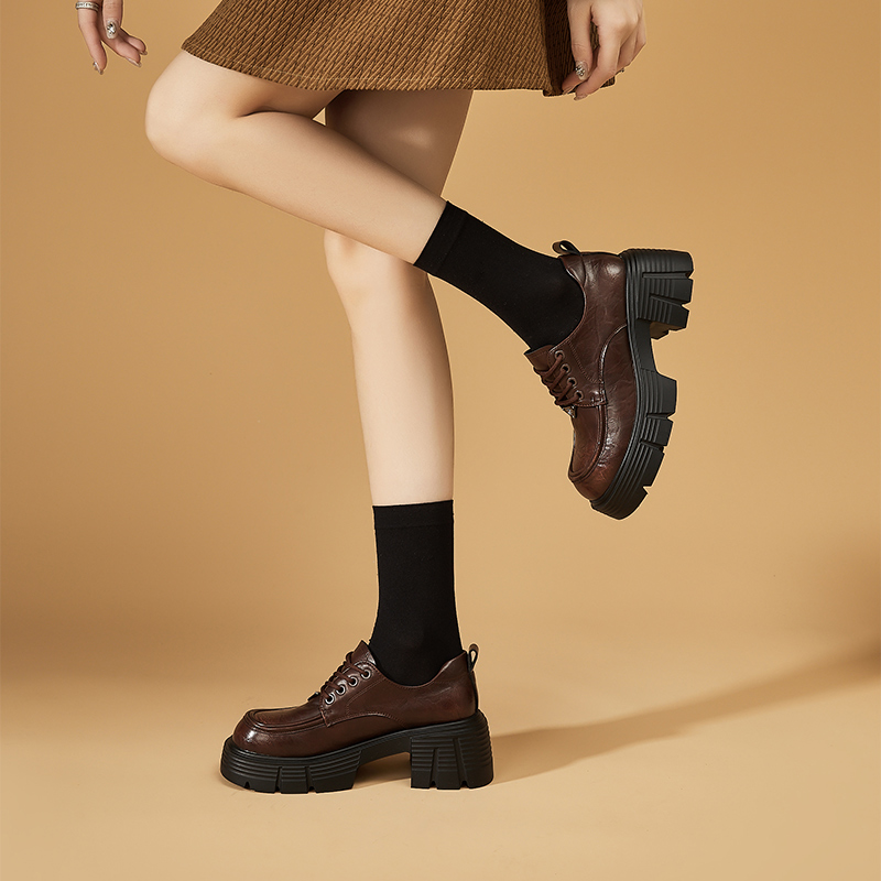 真皮~骄屿厚底小皮鞋英伦系带增高复古百搭休闲德比马丁乐福单鞋