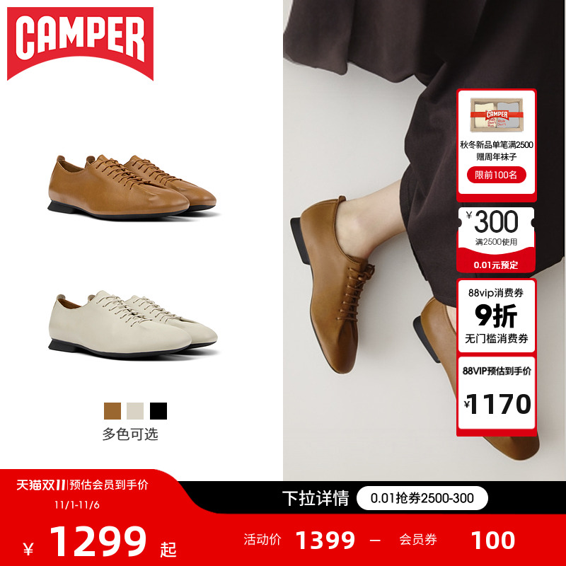 【新品】Camper看步女鞋CasiMyra低跟德比鞋尖头单鞋真皮系带皮鞋
