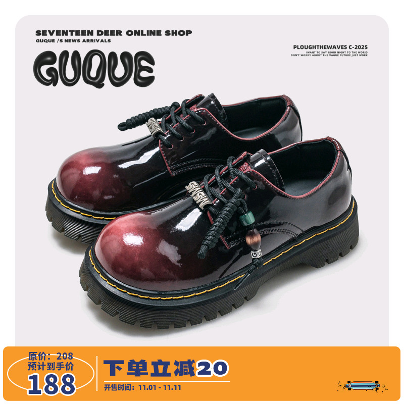 古雀Guque大头厚底德比鞋女2025新款英伦小皮鞋乐福马丁增高单鞋
