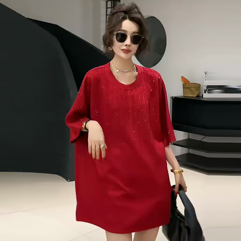 大码流星雨亮钻半袖上衣女打底衫胖mm2025冬季新款宽松显瘦女装潮