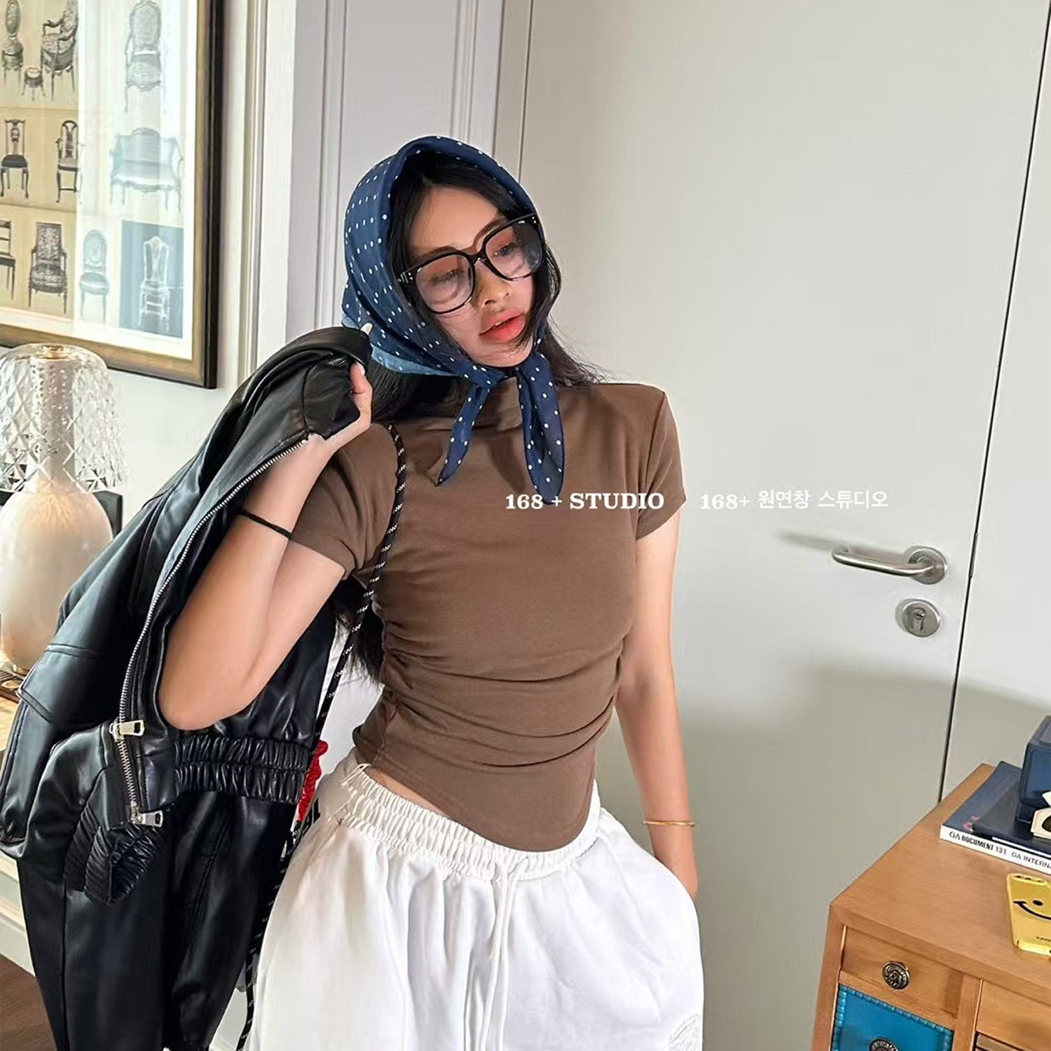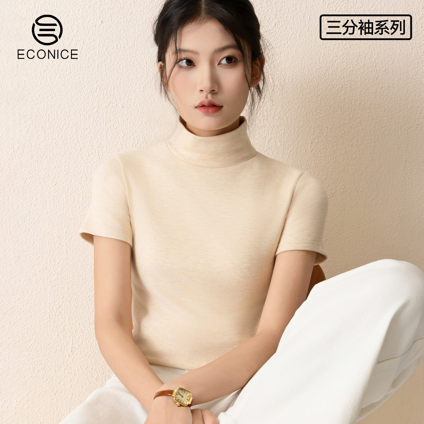 半高领冬季打底衫女秋冬内搭修身显瘦百搭时尚高腰短款半袖设计感