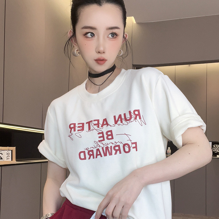 短袖T恤女2025冬季新款欧洲站撞色字母印花圆领打底衫半袖上衣