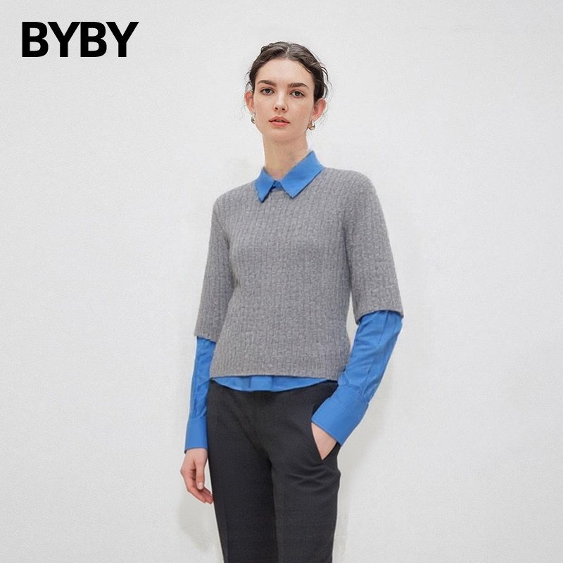 纽扣短袖羊绒针织T恤女套头半袖毛衣2025冬季新款五分袖打底上衣