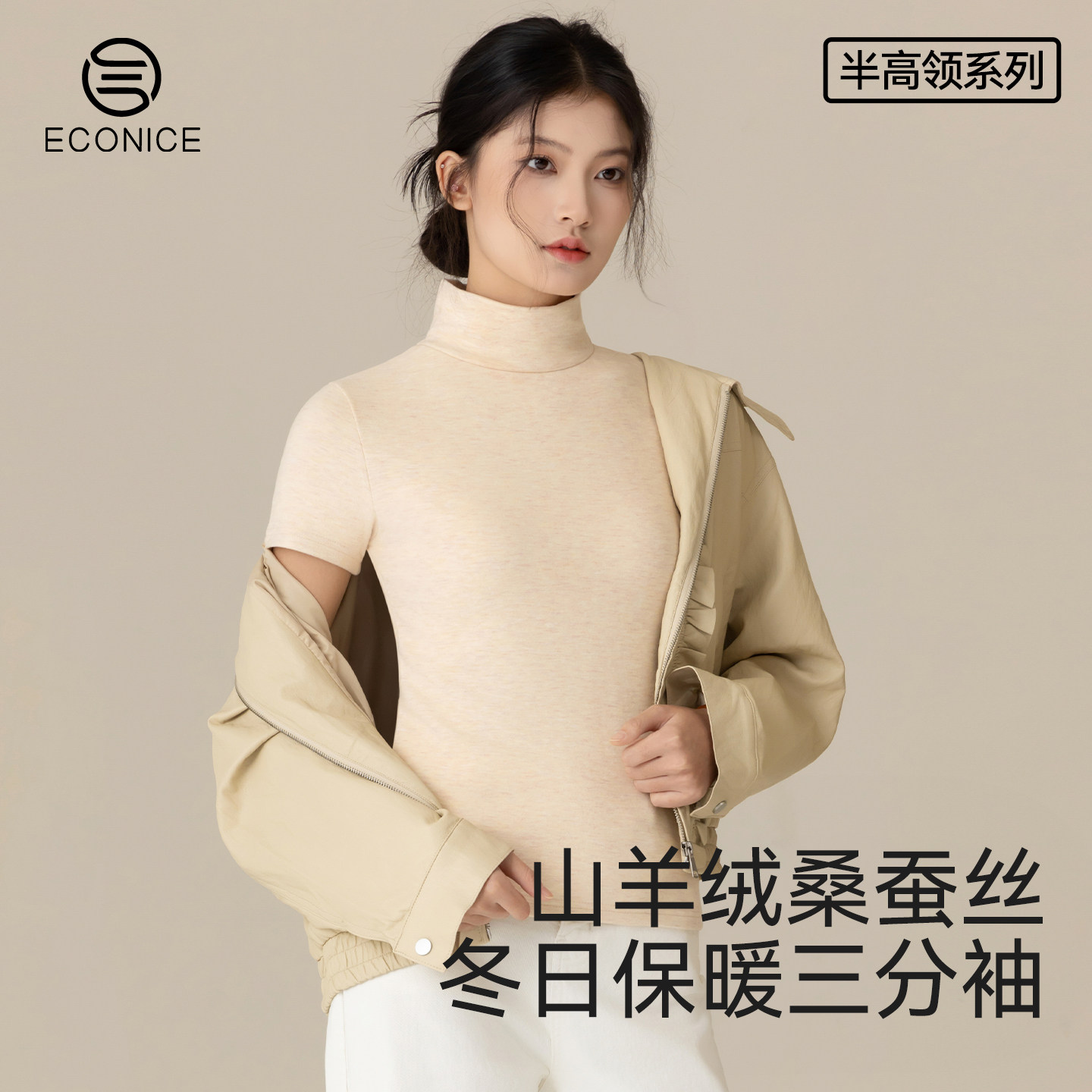 德绒保暖内衣三分短袖女无痕半袖秋衣冬季羊绒打底衫高领内搭上衣