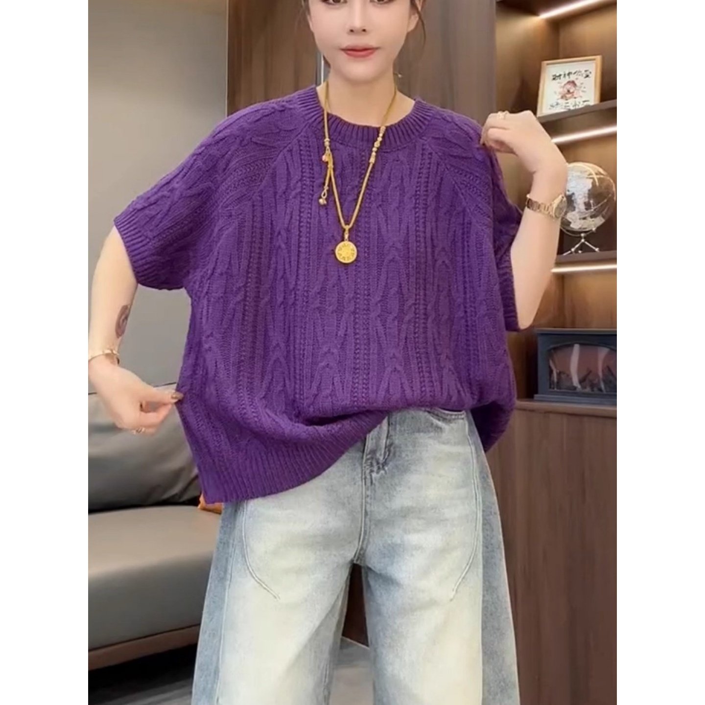 秋冬季胖MM半袖打底针织衫300斤大码复古宽松减龄休闲显瘦毛衣女