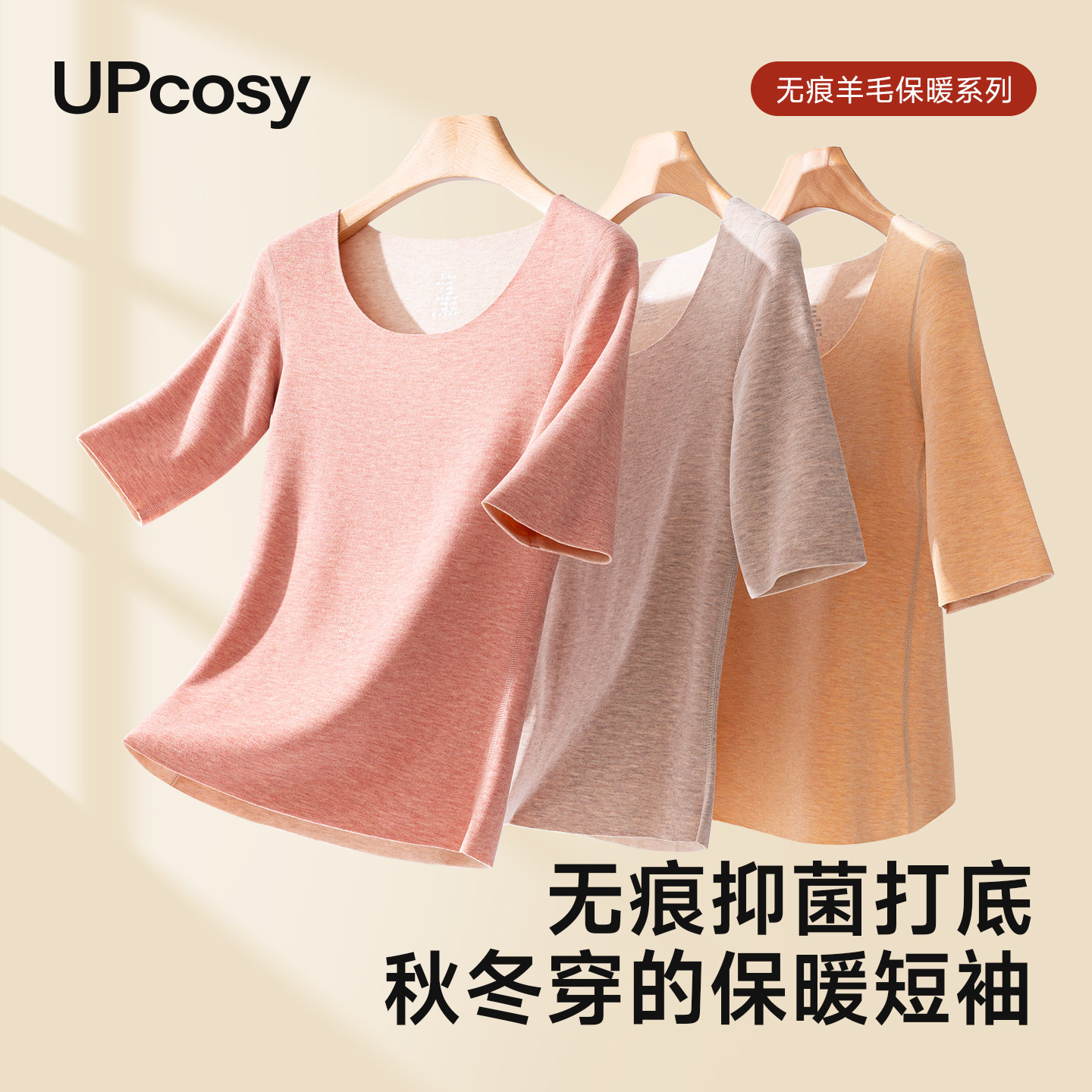 纯棉七分袖保暖内衣女中袖上衣秋冬季半袖秋衣T恤内搭隐形打底衫
