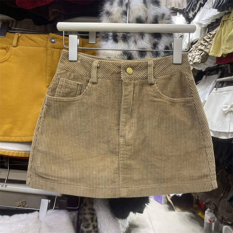 欧货卡其色复古灯芯绒半身裙女2025年冬季新款高腰辣妹防走光短裙