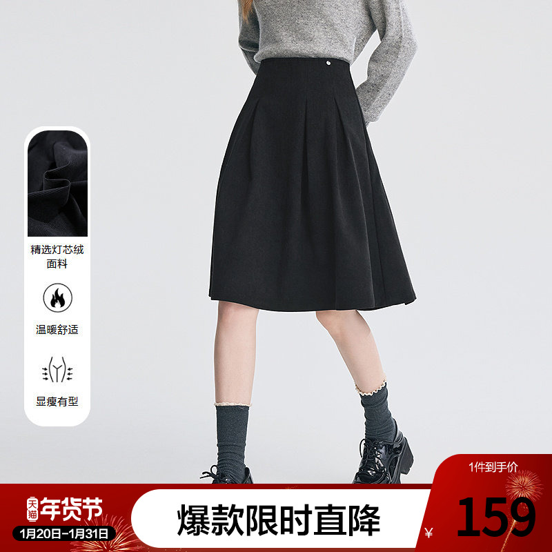 betu百图黑色高腰灯芯绒半身裙女2025年冬季新款显瘦百搭A字裙