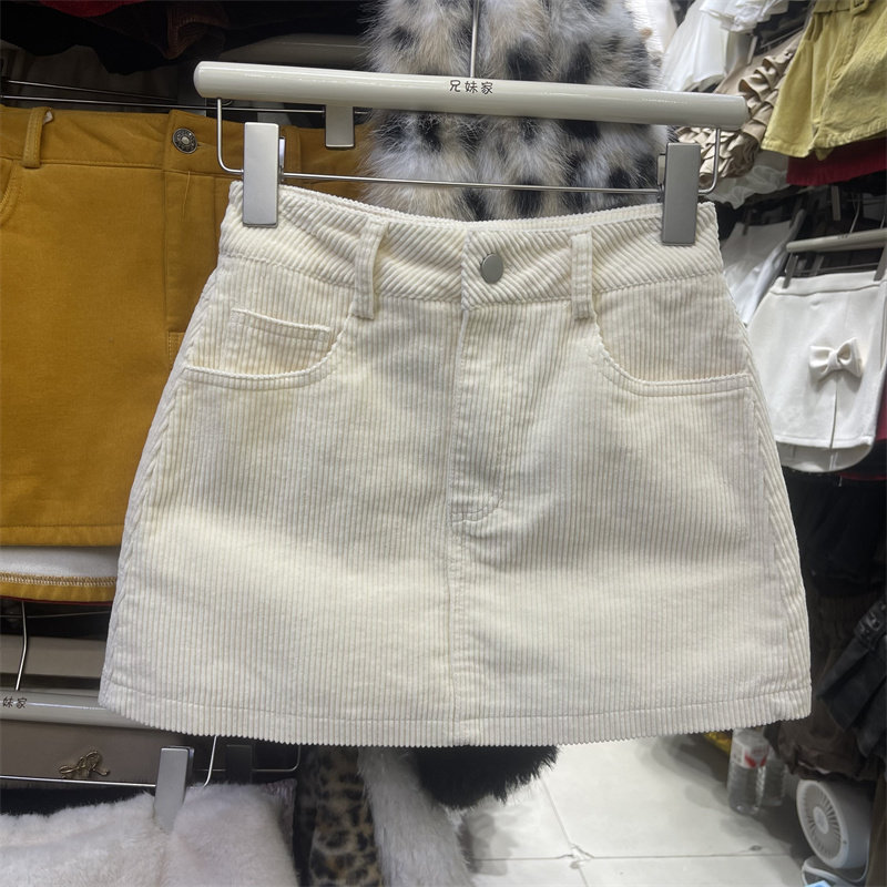 韩系米白色灯芯绒半身裙女2025年冬季新款时尚高腰气质A字短裙