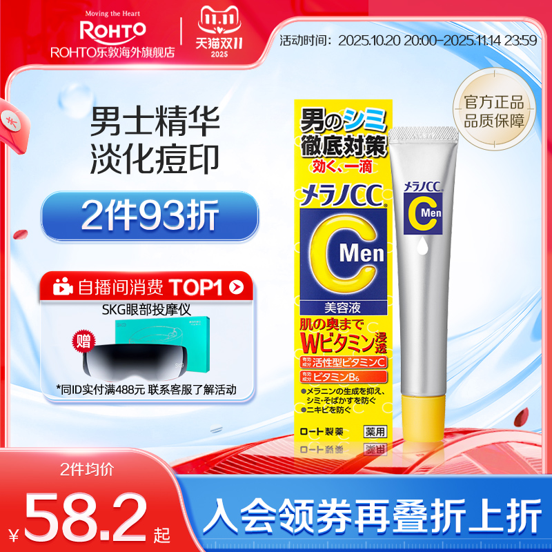 【临期】乐敦CC男士精华液祛痘淡印斑滋润护肤收缩毛孔精华官方正