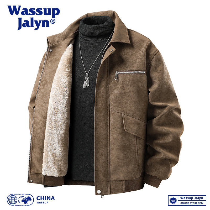 WASSUP JALYN秋冬复古加绒皮衣外套美式男士加厚痞帅飞行员皮夹克